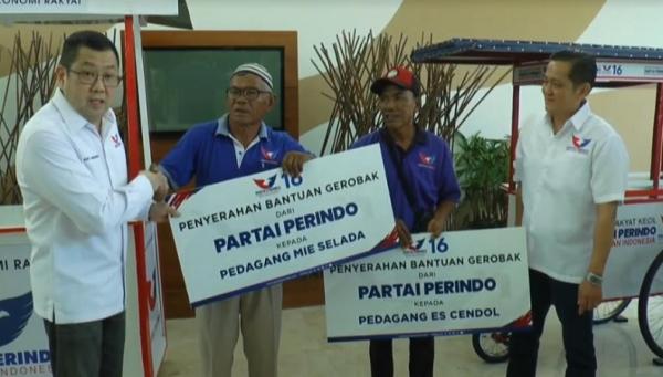 Dua penerima gerobak Perindo adalah Edi Kasim, pedagang mi selada, dan Yoyon Nasution, pedagang es cendol. Gerobak diserahkan langsung oleh Ketua Umum Partai Perindo Hary Tanoesoedibjo.